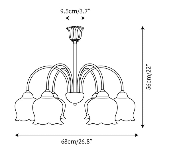 6 Heads Size: Dia 65cm x H 56cm / ∅ 25.5″ x H 22″