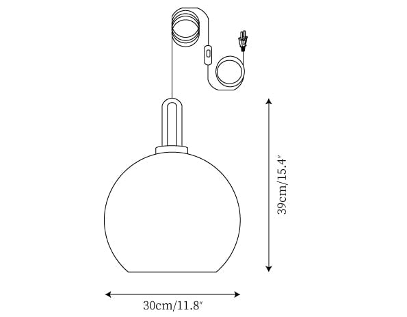 Sphere size: Dia 30cm x H 39cm / ∅ 11.8″ x H 15.4″ (2 hooks)