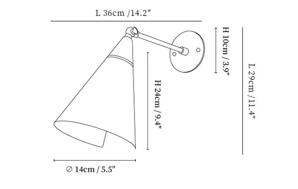 Experience the perfect blend of French and Italian Mid-Century Modernism with our Petite Magari wall lamp. Handcrafted to order, the shade features a swivel mechanism for easy rotation. The beveled edge along the bottom adds a unique touch to this timeless design. Elevate your space with this sophisticated and functional sconce.