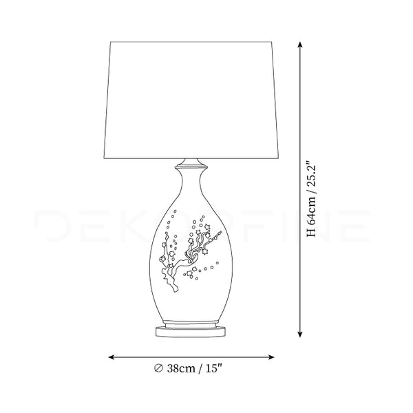 The gorgeous ceramic base of this lamp is highly durable and decorated with a stunning pattern for an artistic touch in your home. The ceramic base color is enhanced with mud-carving pastel blossoms for a timeless antique look.