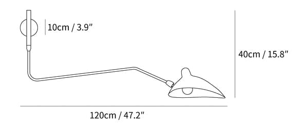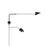 The Two Arm Wall Sconce by Serge Mouille presents a striking visual accent through its expressive silhouette. Part of Mouille’s 1950s line of insect-inspired pieces, this slender fixture was a response to the bulkier Italian designs of the time, intentionally created as highly functional and sophisticated art. Two thin aluminum arms gracefully extend from a shared mounting plate, with artfully shaped shades at their end that can be adjusted by brass ball-and-socket joints. Its arms swivel independently, creating the desired ambiance and adding visual drama.
