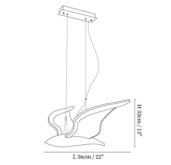 The Warbler Chandelier captures the essence of a bird in flight, with beautifully crafted wooden wings appearing to glide effortlessly through the air. Soft ambient light emanates from the body of the chandelier, creating a warm and inviting ambience. Combining organic shapes with modern design, it makes the perfect representation for those who appreciate the harmony and beauty of nature in their living spaces.