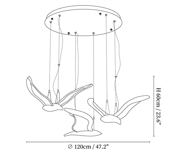 3 Heads: Dia 120cm x H 60cm / ∅ 47.2" x H 23.6"