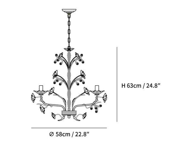 6 Heads Size: Dia 58cm x H 63cm / Φ 25.6″ x H 24.4″