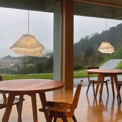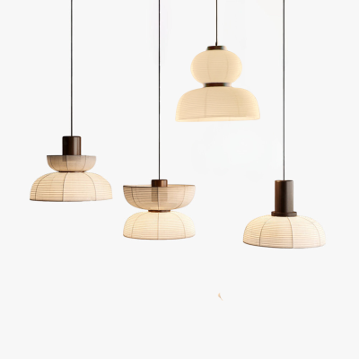 Lámpara colgante de madera/tela de jaula para pájaros moderna Ozawa