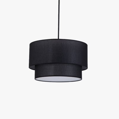 Lámpara colgante de tela de doble tambor Renée Modern, Negro/Blanco/Lino