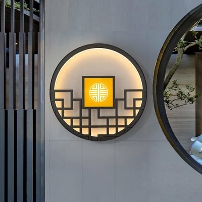 Luz de pared redonda de jardín estilo asiático