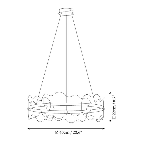 Stamaño: diámetro 60 cm x alto 22 cm / ∅ 23,6 ″ x alto 8,7″ (potencia ~ 18 W)