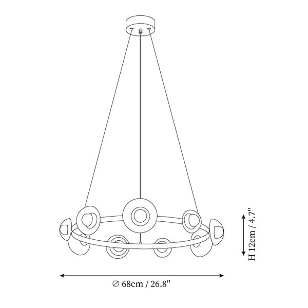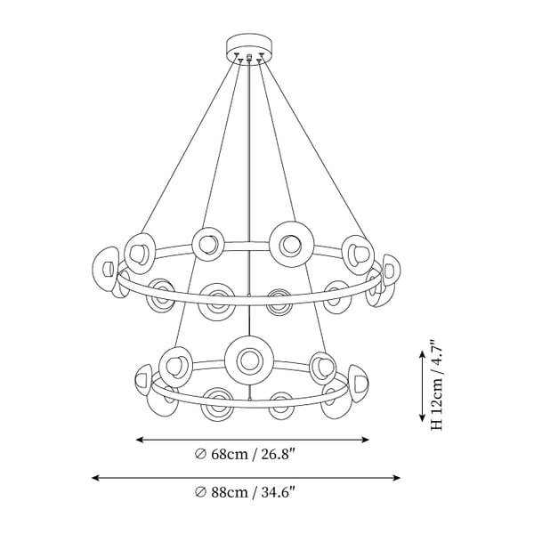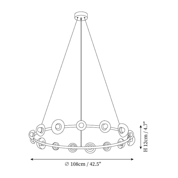 15 cabezales Tamaño: diámetro 108 cm x alto 12 cm / ∅ 42,5 ″ x alto 4,7 pulgadas (potencia ~ 60 W)