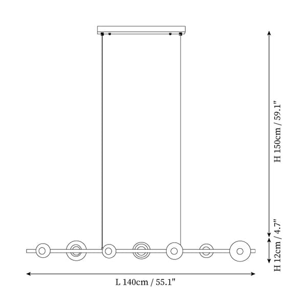 7 cabezales Tamaño: L 140 cm x H 12 cm / L 55,1 ″ x H 4,7 ″ (potencia ~ 28 W)
