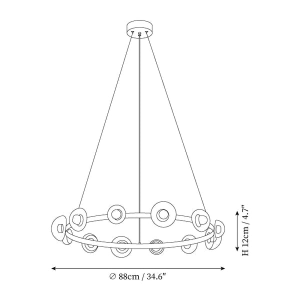 12 cabezales Tamaño: diámetro 88 cm x alto 12 cm / ∅ 34,6 ″ x alto 4,7 ″ (potencia ~ 48 W)