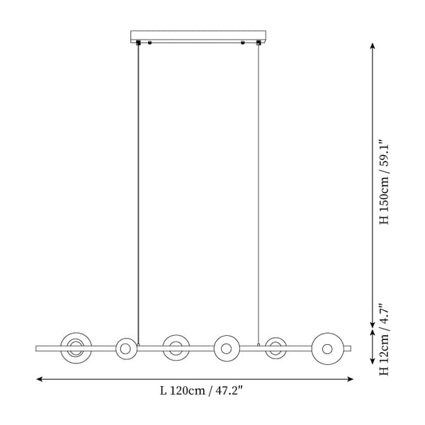 6 cabezales Tamaño: L 120 cm x H 12 cm / L 47,2 ″ x H 4,7 ″ (potencia ~ 24 W)