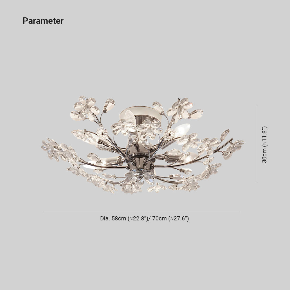 Luz de techo empotrada en forma de flor con cristales modernos Ophelia para sala de estar, cromo