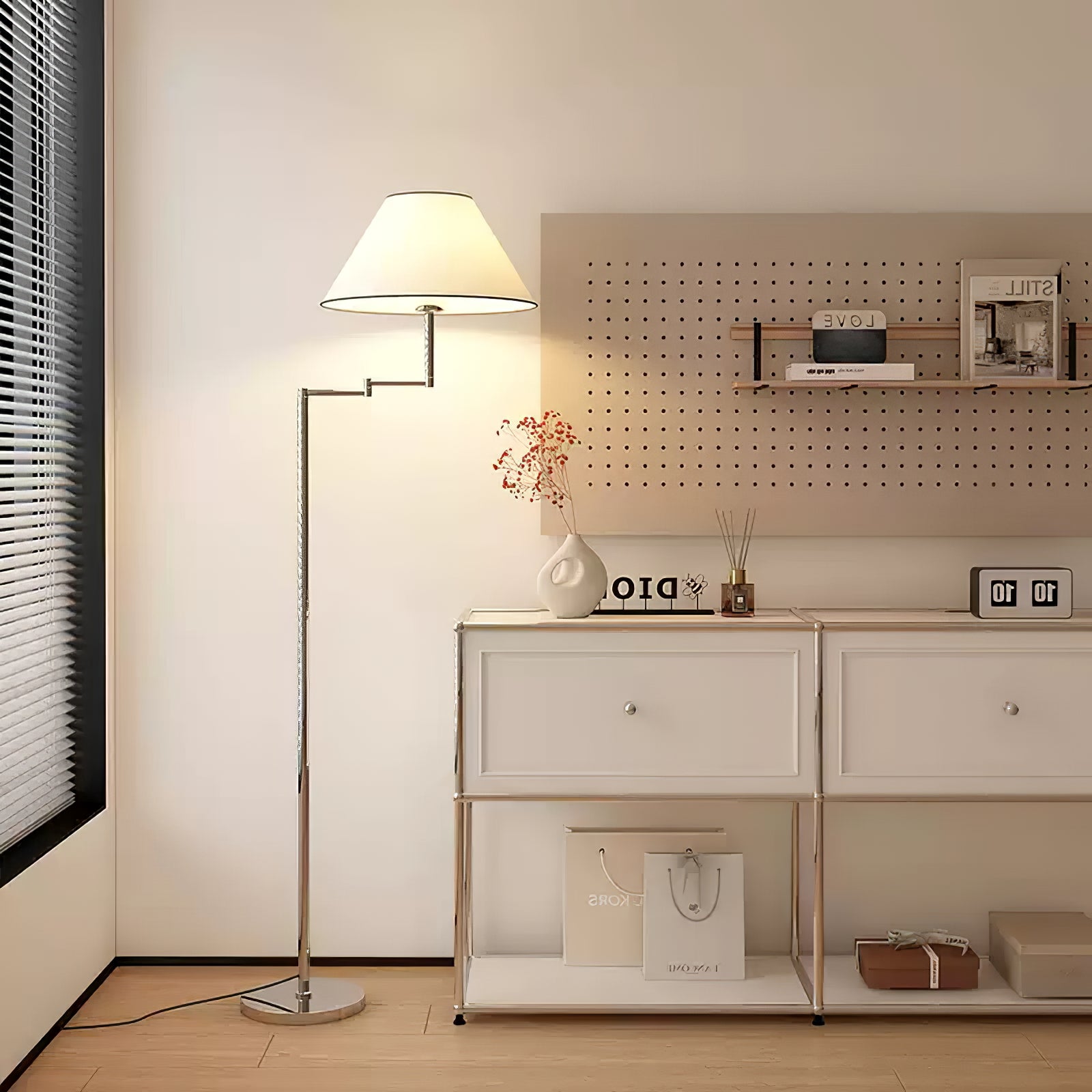La lámpara de pie contemporánea con brazo oscilante de cromo combina un estilo elegante con practicidad, convirtiéndola en una adición destacada para cualquier espacio moderno. Su brazo ajustable permite una iluminación personalizada, mientras que el diseño minimalista añade un toque refinado y sofisticado. Perfecta tanto para la funcionalidad como para la estética, esta lámpara realza la atmósfera de tu habitación con su apariencia lujosa, creando un ambiente de elegancia y confort para quienes valoran la decoración moderna con un toque de exclusividad.