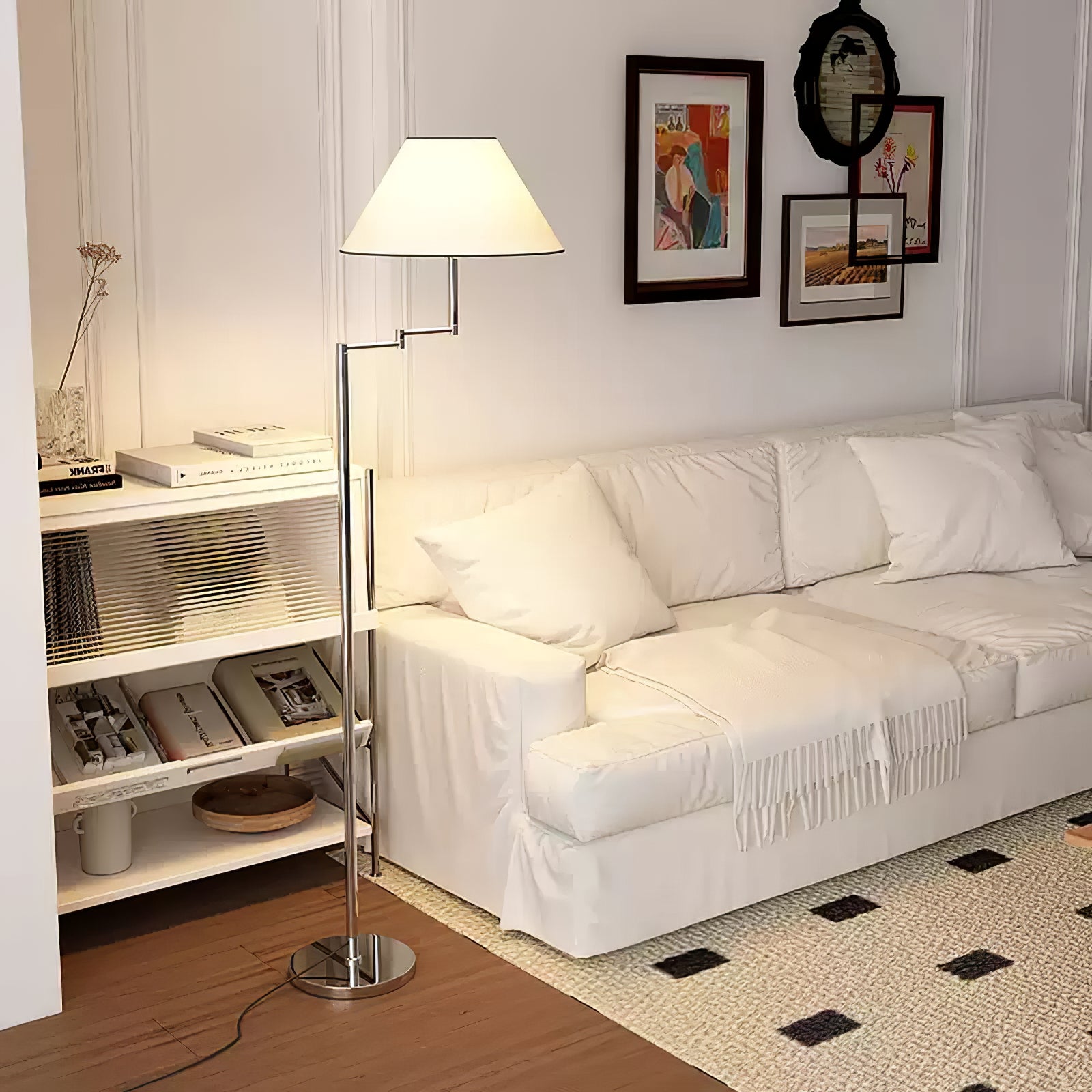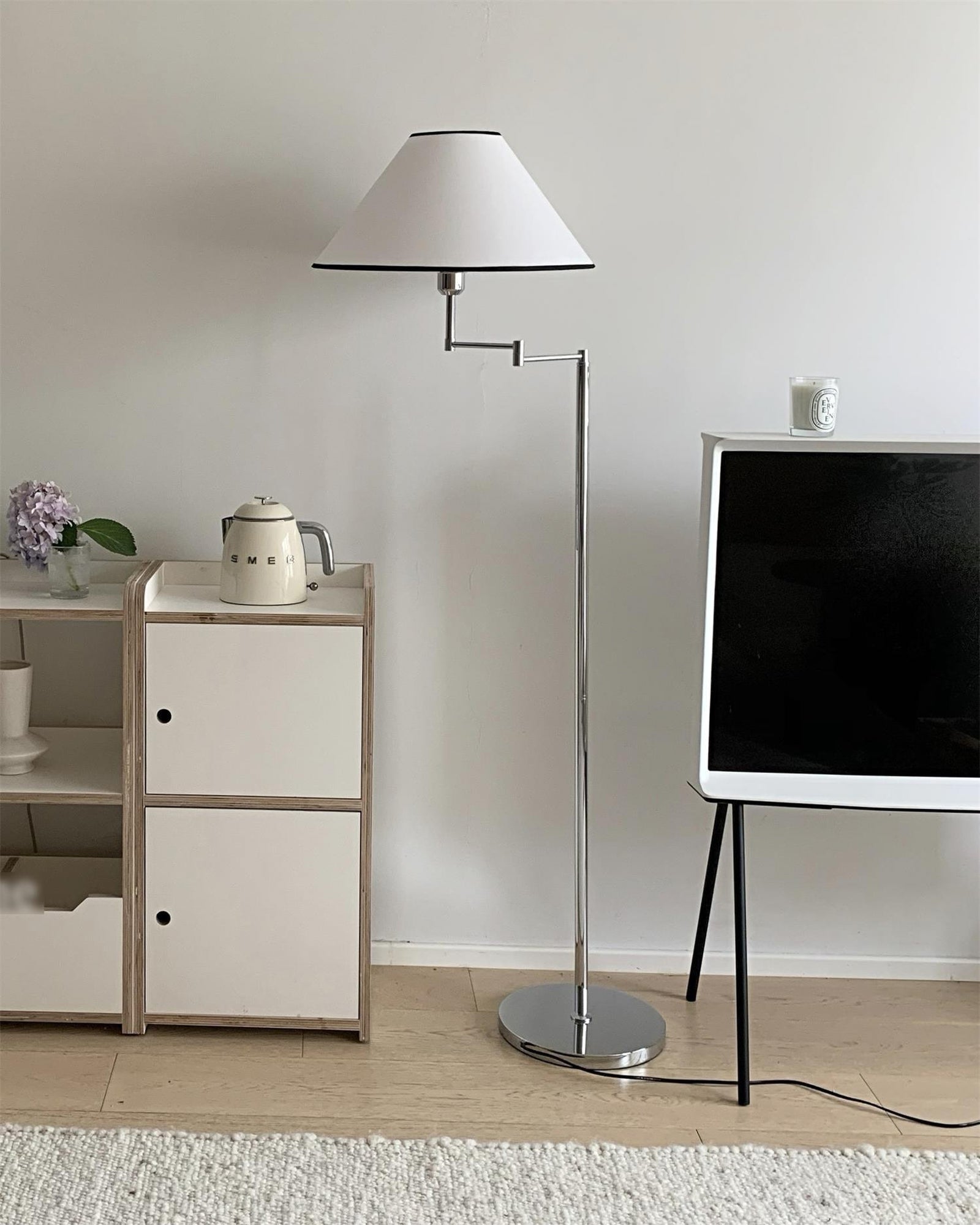 Lámpara de pie contemporánea con brazo oscilante de cromo