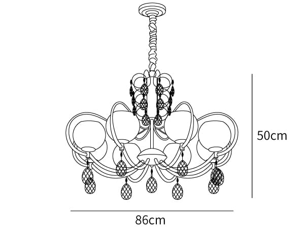 Tamaño de 8 luces: Diámetro 86cm x Altura 50cm / ∅ 33.9″ x Altura 19.7″