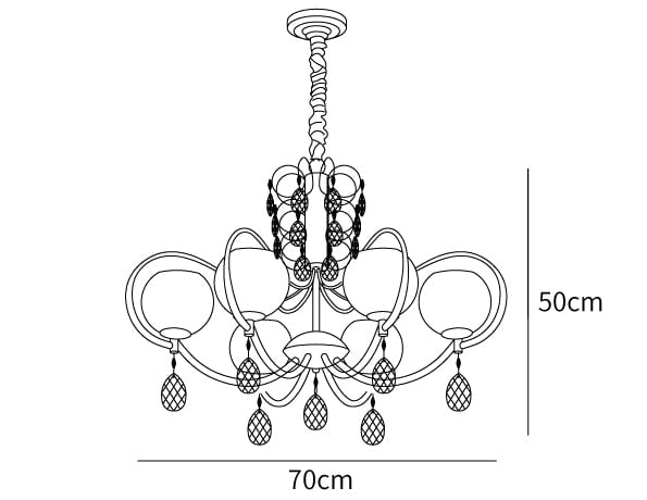 Tamaño de 6 luces: Diámetro 70cm x Altura 50cm / ∅ 27.6″ x Altura 19.7″
