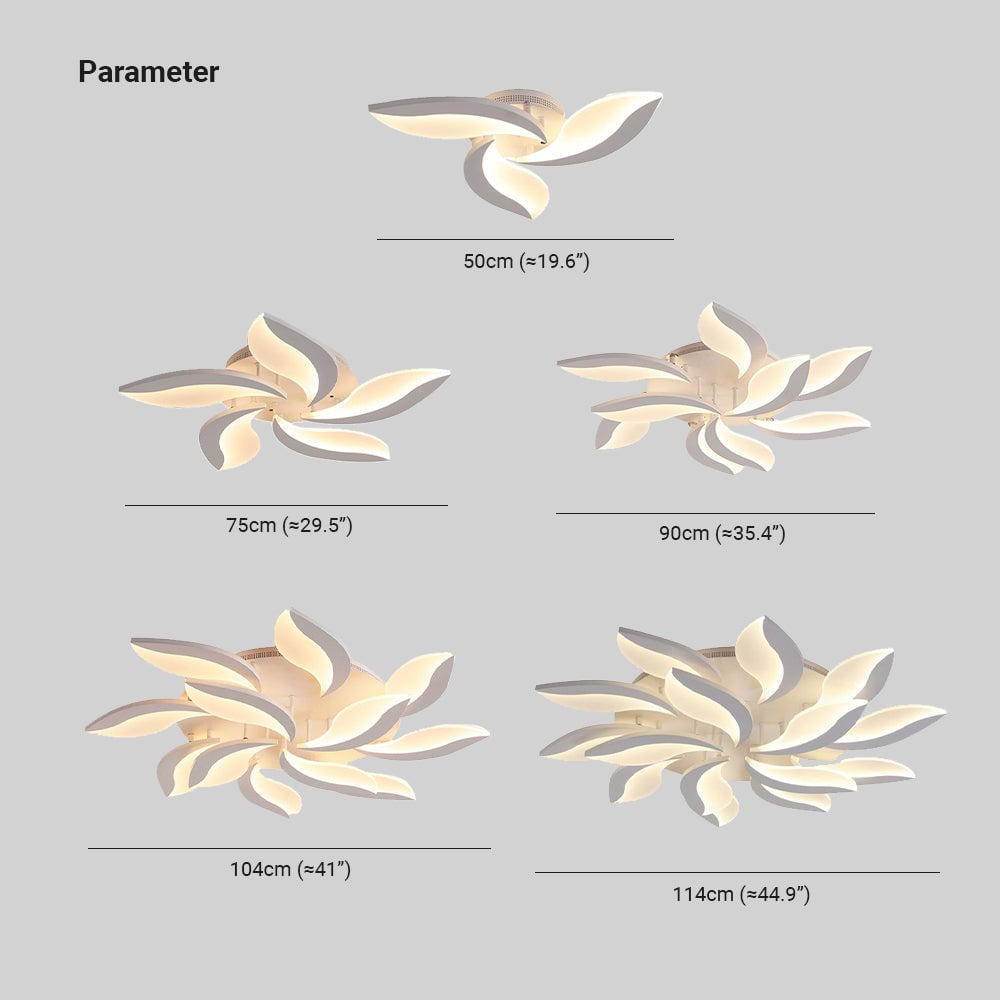 - La lámpara de techo minimalista con un diseño artístico de flores en flor, y el color blanco puro la inclinan hacia un estilo moderno.