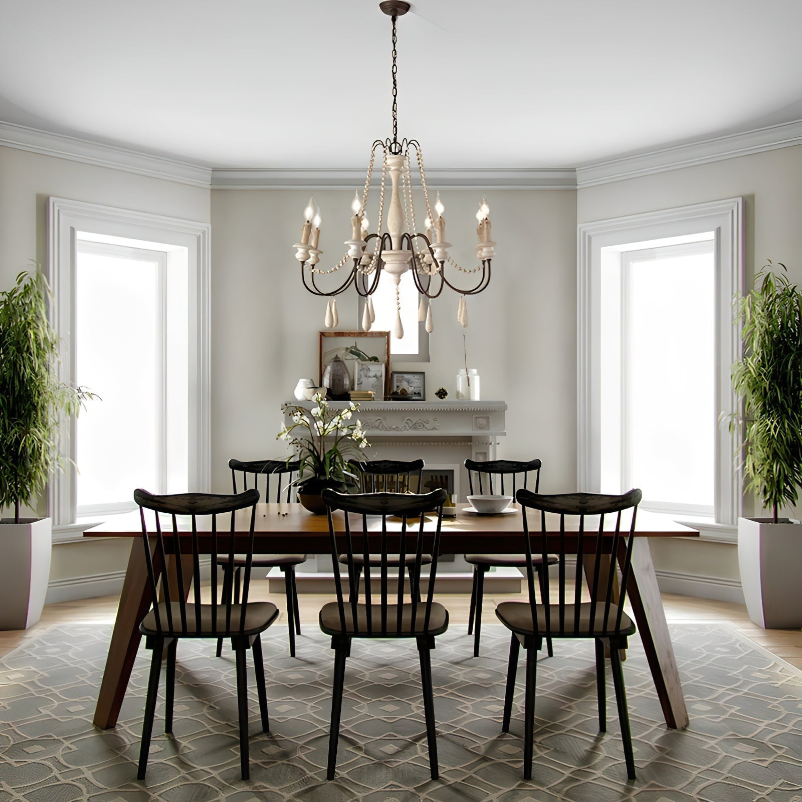 Este candelabro rústico de cuentas captura perfectamente la elegancia atemporal, convirtiéndose en una adición ideal para cualquier comedor, sala de estar o dormitorio. Con un robusto marco de hierro entrelazado con cuentas de madera natural, este candelabro forma una cautivadora silueta inspirada en las velas. El intrincado diseño de cuentas añade un encanto vintage, transformando su espacio en uno de sofisticación inigualable. Ideal para crear un impacto en cualquier entorno clásico o contemporáneo.
