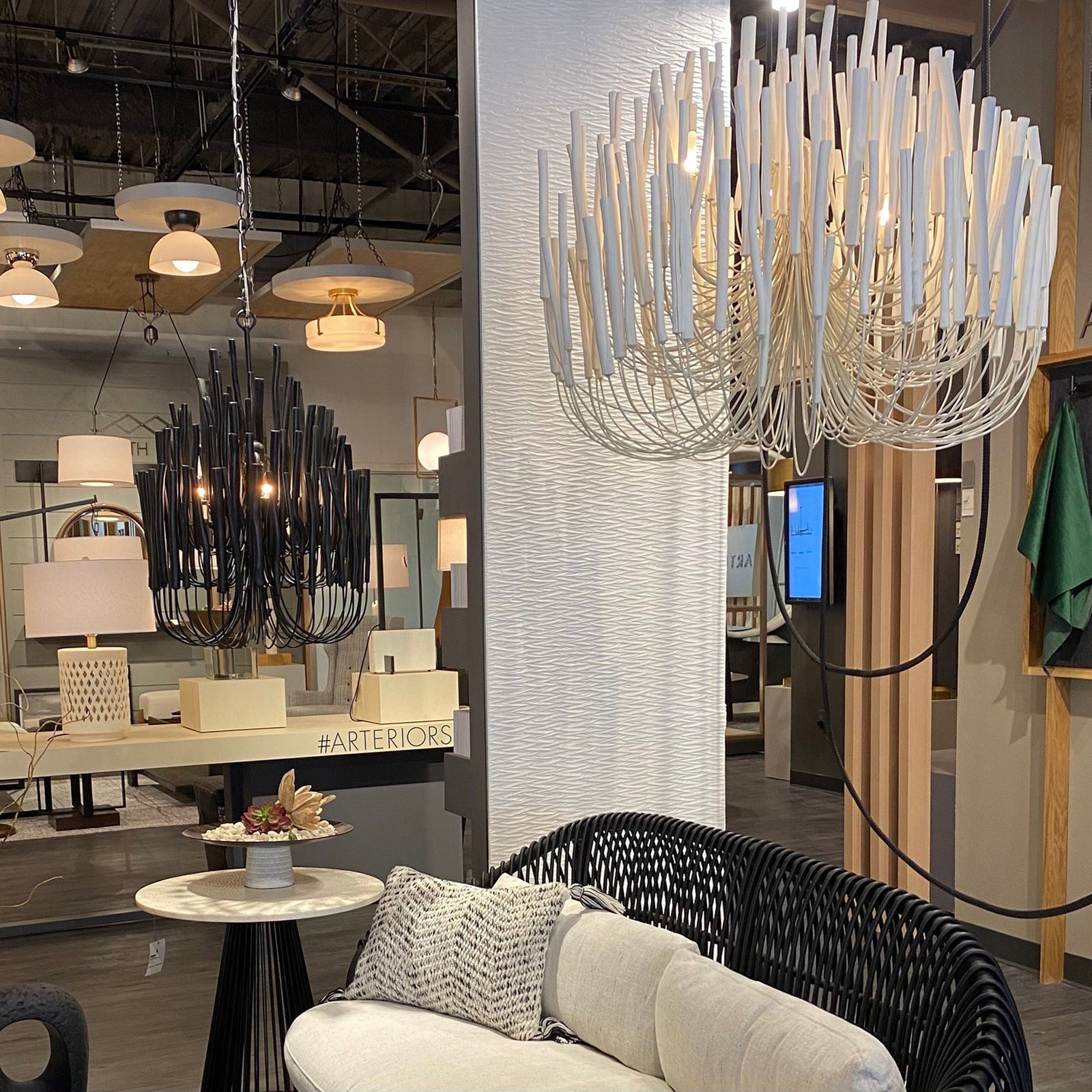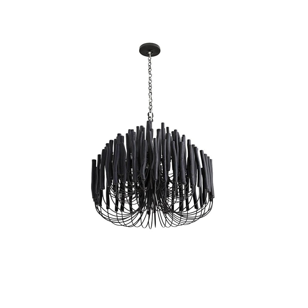 Eleva tu hogar con el candelabro de múltiples ramas Tilda. Condelgados palos de madera y brazos de hierro curvados, crea un juego hipnotizante de luz y sombra. Disponible en acabados negro o blanco, esta lámpara colgante añade una elegancia natural y una dimensión única a cualquier habitación. ¡Un iniciador de conversaciones que elevará tu espacio!