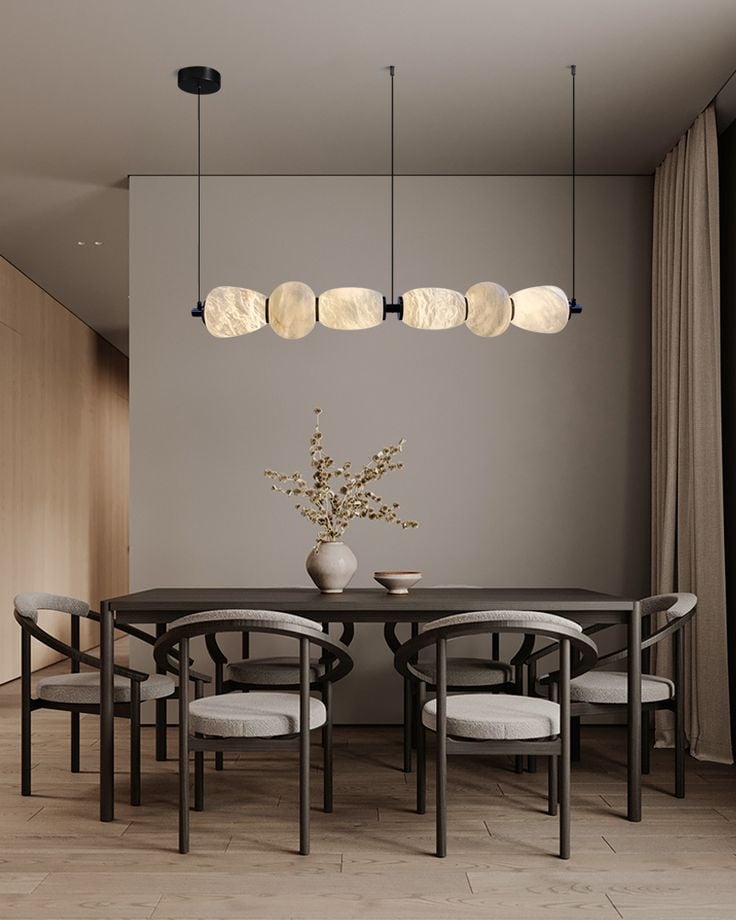 Pendientes llamativos que marcan el ritmo de la mesa, proporciones equilibradas y un suave resplandor que crean un ambiente íntimo para cenar, donde la artesanía se une a la elegancia contemporánea.