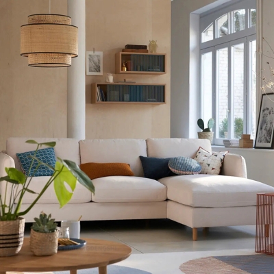 Lustre en rotin Ritta Modern Twist pour un salon en bois