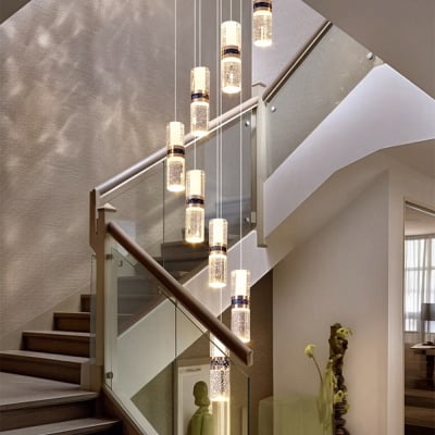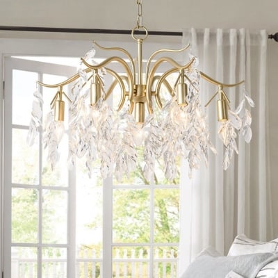 Chandelier de salle à manger en cristal doré moderne à plusieurs niveaux
