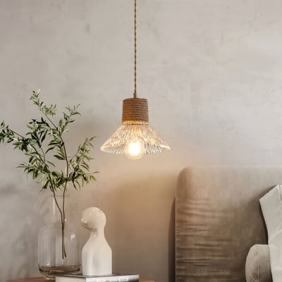 Suspension en verre avec cordage en chanvre