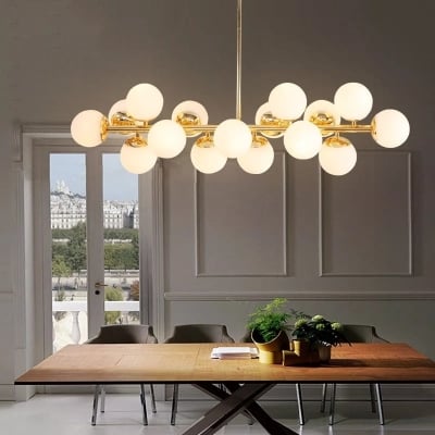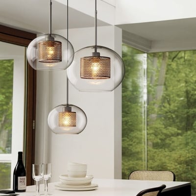 Suspension industrielle nordique en verre pour salle à manger, dorée
