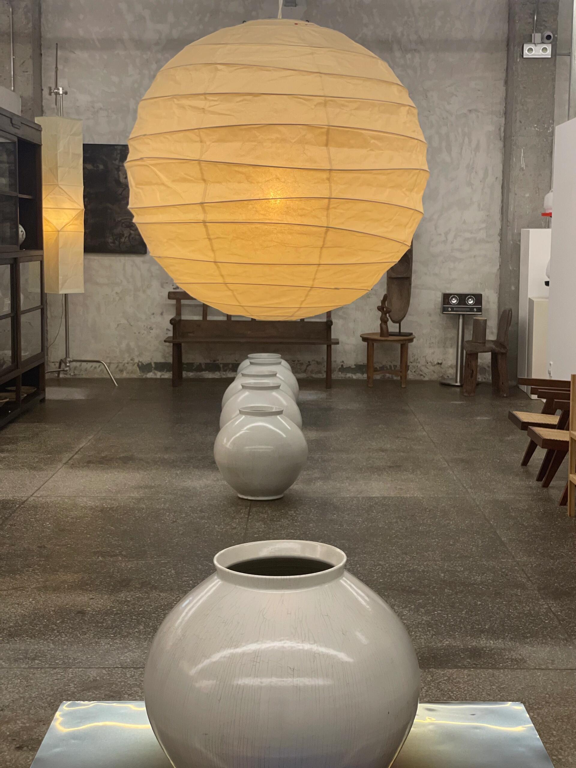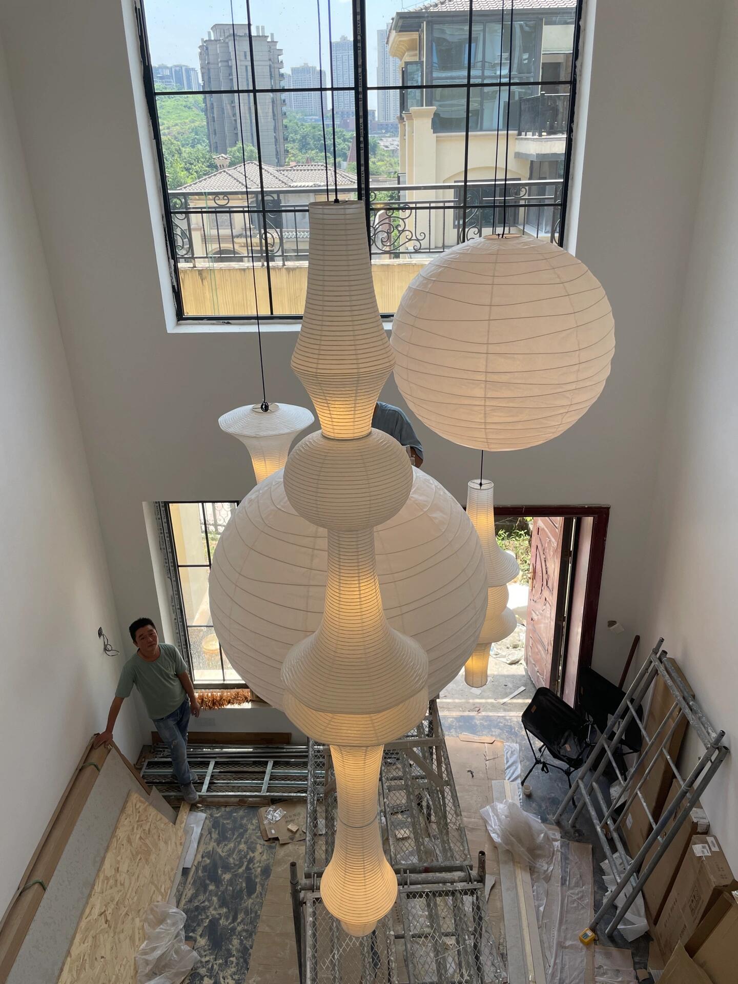 Cette suspension Akari 55D 75D est l'harmonie parfaite entre l'artisanat japonais séculaire et les formes modernes. Fabriquée à la main avec du papier washi et des nervures en bambou, elle est maintenue par un cadre en métal pour une stabilité maximale. Un design emblématique inspiré du modernisme des années 1950, sa lanterne en papier apportera une touche d'élégance et de goût à n'importe quelle pièce.