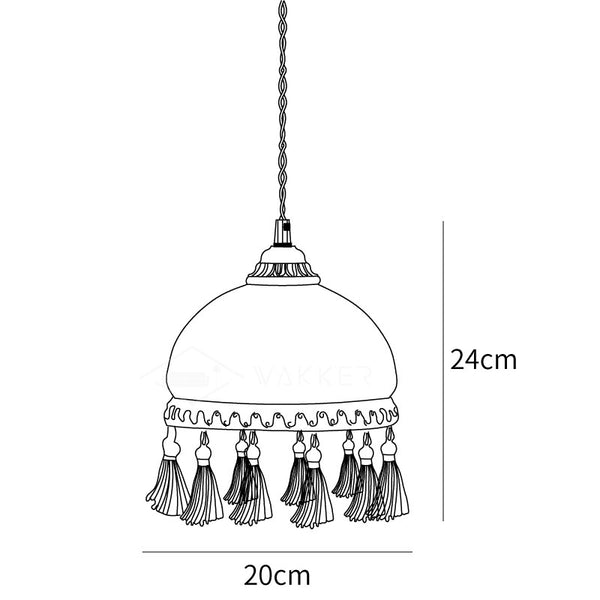 Ces pendentifs s'inspirent de la décadence du design victorien et allient une forme contemporaine soufflée à la main avec des garnitures en tissu décoratif. Un style coloré pour votre maison.