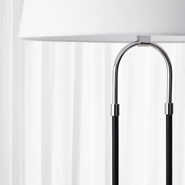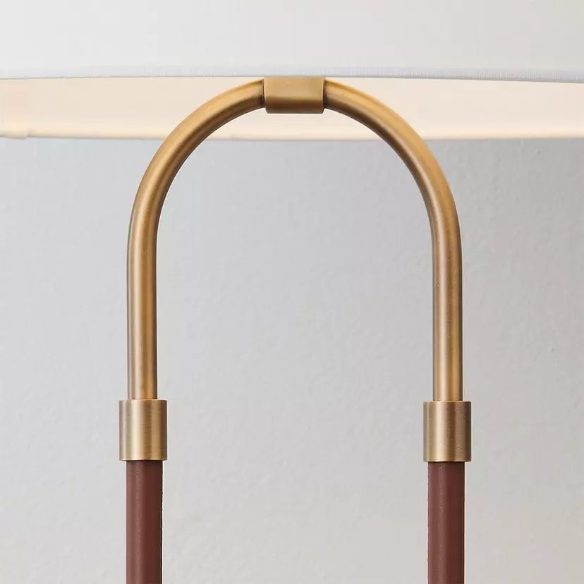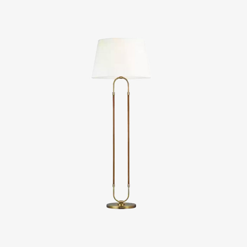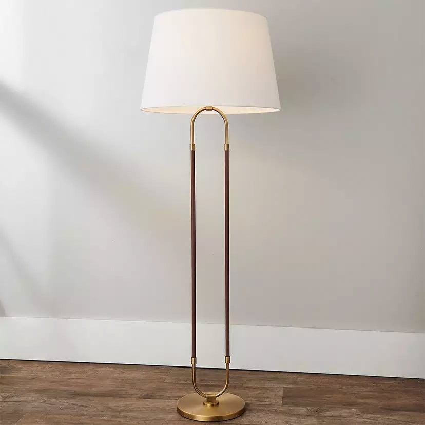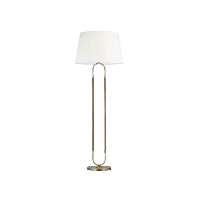 Elevate your space with the timeless design of the Katie Brass Floor Lamp. The contrast between leather straps and a white linen shade creates a stunning look, while the options of antique brass with brown leather or polished nickel with black leather add versatility. Perfect for adding a touch of equestrian style to any room!
