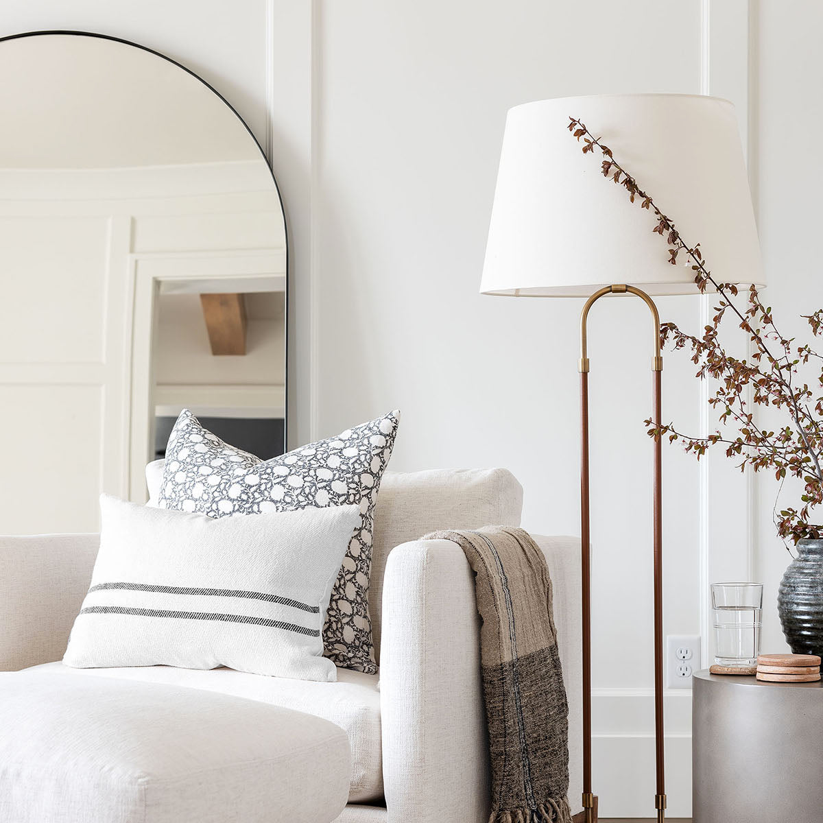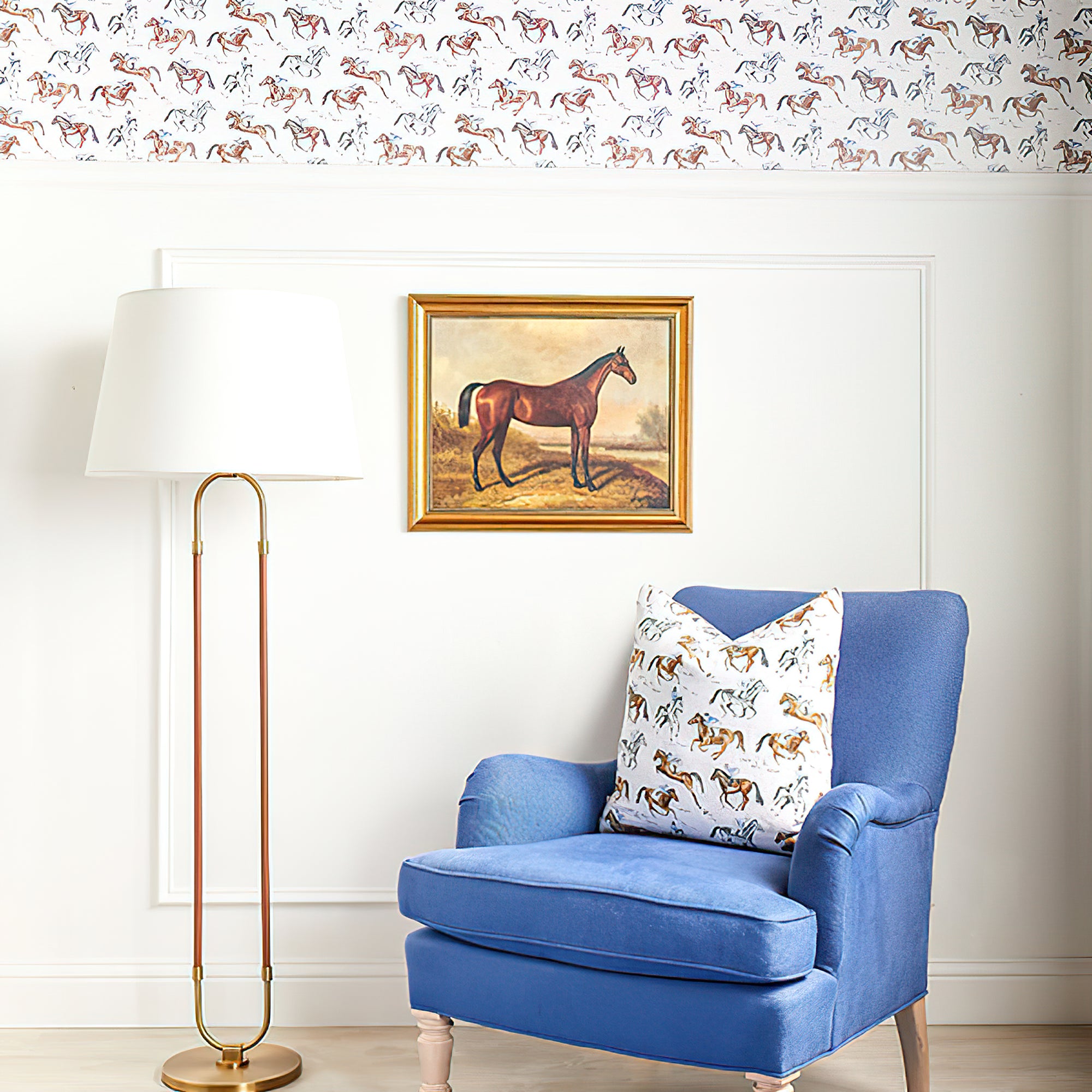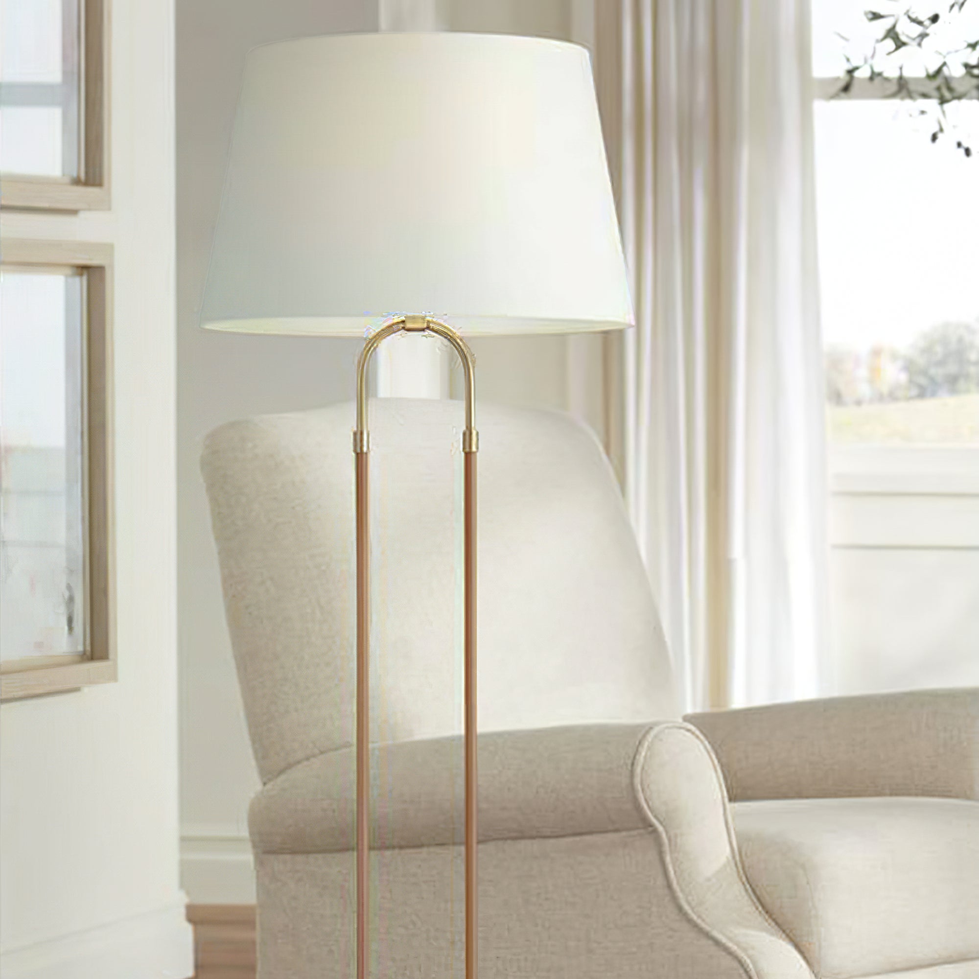 Elevate your space with the timeless design of the Katie Brass Floor Lamp. The contrast between leather straps and a white linen shade creates a stunning look, while the options of antique brass with brown leather or polished nickel with black leather add versatility. Perfect for adding a touch of equestrian style to any room!