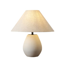 Fabriqué en céramique, cet ajout classique s'intègre harmonieusement à votre espace de vie. Son émail texturé mat et son abat-jour en lin blanc apportent une touche intemporelle à ce design simple, avec un cordon recouvert de tissu pour parfaire l'ensemble.