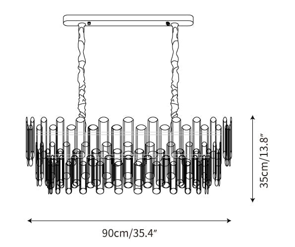 Taille du modèle B : L 35,4″ x H 13,8″ / L 90cm x H 35cm (E14*16)