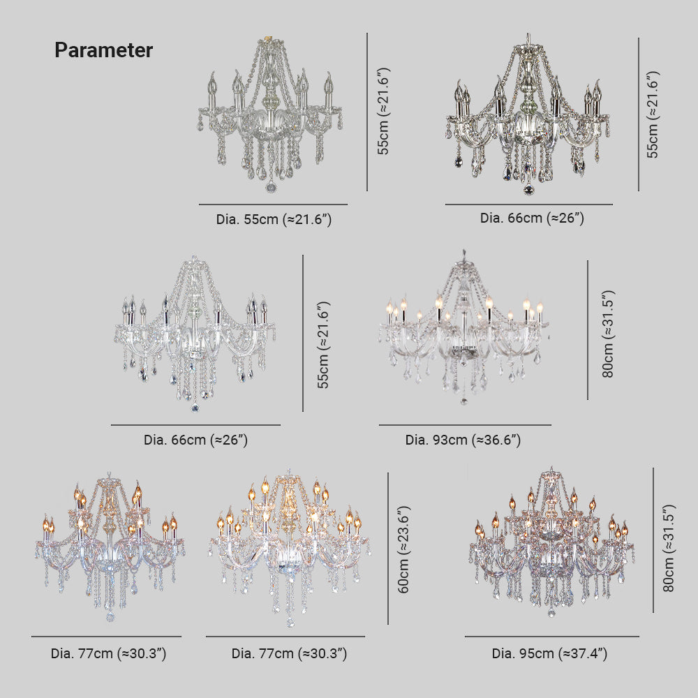 - Du salon luxueux au salon confortable en passant par la chambre tranquille, les lustres en cristal Silva conviennent à tout environnement. Son design polyvalent permet une intégration harmonieuse dans une variété d'espaces, ajoutant luxe et élégance où que vous le suspendiez. Que vous organisiez un dîner somptueux ou souhaitiez créer un refuge tranquille, ce lustre est la décoration parfaite.