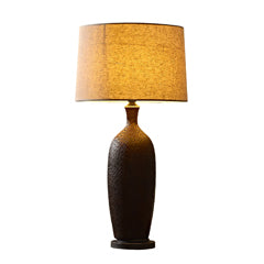 Cette base de lampe de table en céramique avec une texture 'martelée' et une finition en bronze serait l'élément phare de n'importe quelle pièce. Complétée par son propre abat-jour oval en taffetas taupe, cette lampe est parfaite pour éclairer tout espace de vie.