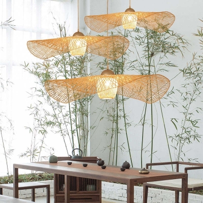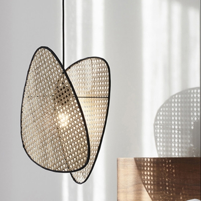 Ritta Lampadario a Ventaglio Creativo in Rattan Intrecciato in Stile Francese, in Legno