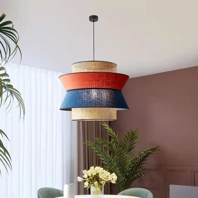 Lampada a sospensione in tessuto cilindrico Ritta/Rattan, Rosa/Blu Reale
