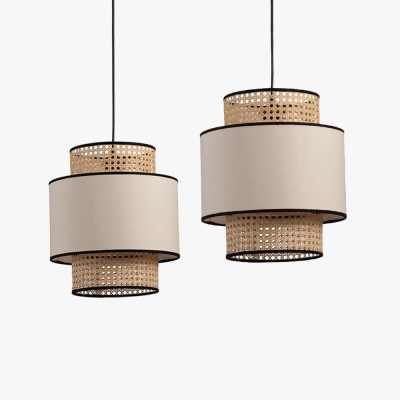 Lampada a sospensione in tessuto/rattan Ritta Farmhouse, 2 stili