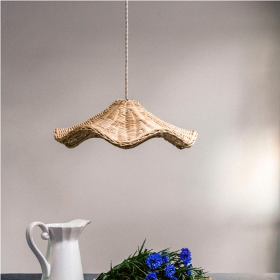 Lampada a sospensione con paralume rustico a petali di rattan