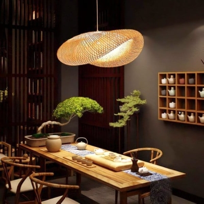 Lampada a sospensione moderna per isola cucina in bambù