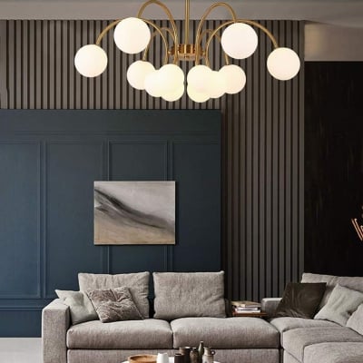Lampadario LED a bolle bianche in stile Art Deco per scale