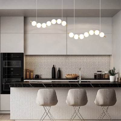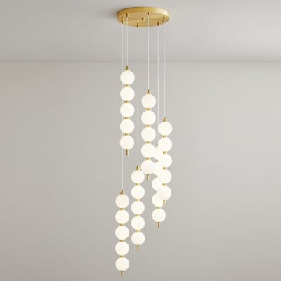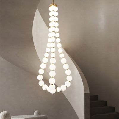 Lampadario a pendente con perle LED bianche per scale