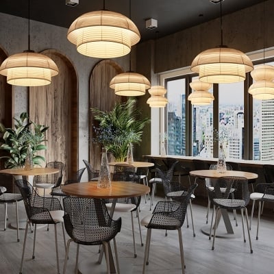 Lampada a sospensione in tessuto vintage a foglia di loto Wabi-Sabi