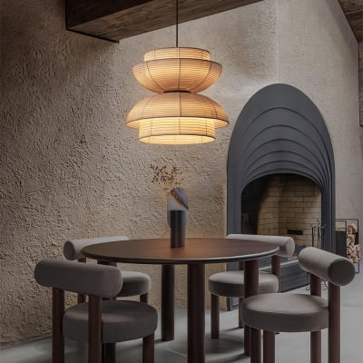 Lampada da terra Dorica in tessuto giapponese stile Wabi Sabi