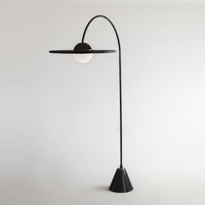 Lampada da terra in metallo e vetro a forma di UFO Carins Modern Arch, nera