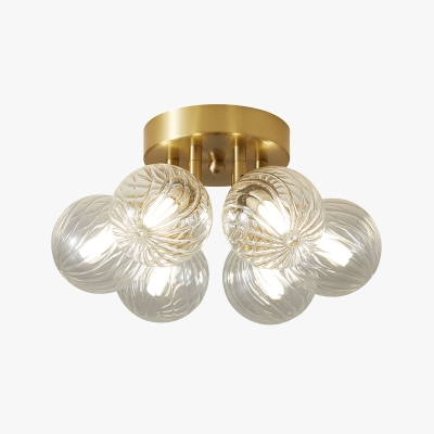 Plafoniera Valentina bolle trasparenti, rame puro e vetro 3/4/5/6 lampadine