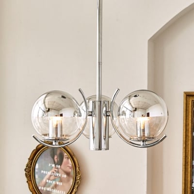 Lampadario a sfera in vetro argentato moderno