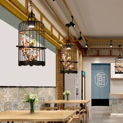 Lampadario in metallo a forma di gabbia per uccelli Art Deco Cooley, nero